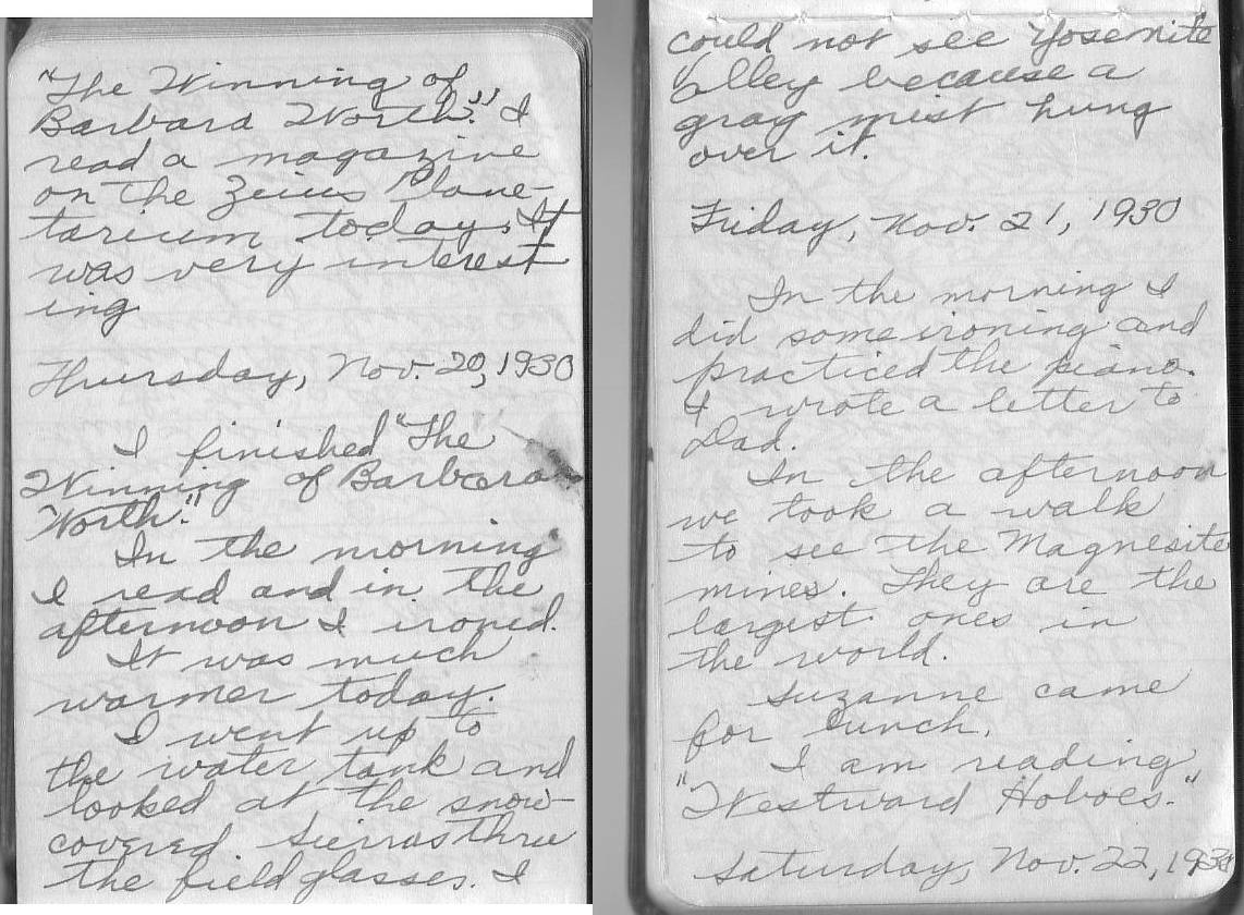 Carol Burrowes DeWolf's Diary - October 15 to December 30 1930 on Mount Hamilton - Page 27 1 2 3 4 5 6 7 8 9 10 11 12 13 14 15 16 17 18 19 20 21 22 23 24 25 26 27 28 29 30 31 32 33 34 35 36 37 38 39 40 41 42 43 44 45 46 47 48 49 50 small large |